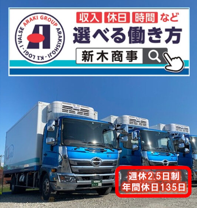 新木商事グループでは、食品配送という24時間・365日体制の仕事のなかで、あなたのライフスタイルに合わせた働き方を見つけることができます。「収入」「時間」「休日」人それぞれ求めることが違います。