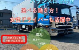 正社員 中型車ドライバー 月収 35万円~45万円以上 内容 固定ルートカゴ輸送 時間 6:00~18:00 休日 シフト制 希望申請可